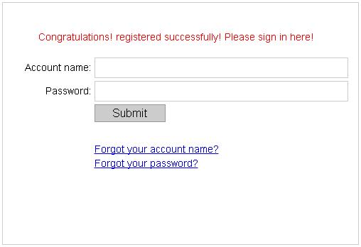 Step 5, Use the account name and password which you registered your account with to fill above form to sign in. or you can also click "Sign in" on right top of each site page to go to above sign-in form to fill out the form to sign in.