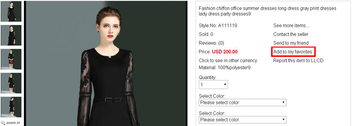 If you have already add some items in your favorite item list and buy later, then you can view all the favorite items summary by clicking "My favorite items", it will go to the page as below: