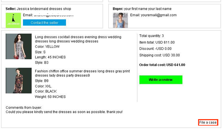 If you already placed an order and having problem with the order, such as you never received your item etc, you can click "File a case" at the bottom of your single order receipt detail page to file a case, such as below picture showing, We will help to investigate the case and try to help to you solve the problem.