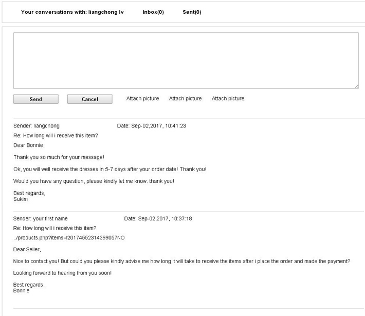On this message detail page, you can write message on the box as well as attach pictures, then click send button to send the message to us! We will get back to you within 24 hours!