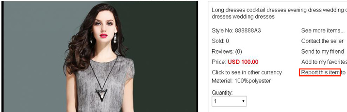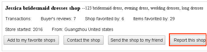 To submit a report or file a case: when you are reviewing a store or an item and think the store is violating our policies or rules or having a copyright issues..please click "Report this shop" on the top of store page and "Report this item" on the right top of product detail page, such as below in red circled: