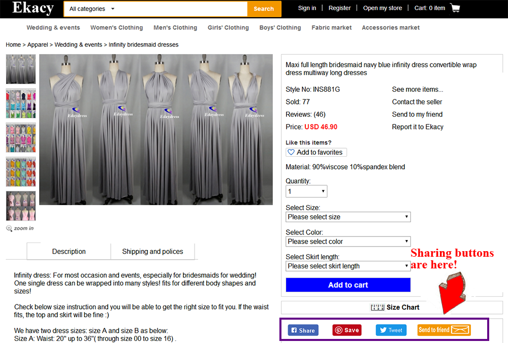 a infinity bridesmaid dress unit price is us$46.90, base commission rate: 10% from Shop N