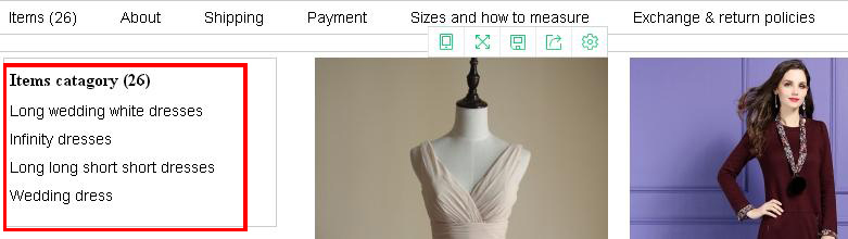 Section management: this is for buyer's easy searching your shop's items, it helps buyers find such items quickly when they are reviewing your shop's products, for example, you have long dresses, short dresses selling at your shop, all the long dresses will be added to long dresses seaction, all short dresses will be added into short dresses section, so when the buyers are reviewing your shop and they want to find a short dresses, then click "short dress section", they will see all the short dresses of your shop. This section will appear on the left of your shop items lists page, such as below: