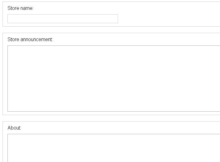 This form includes:Shop name, shop announcement, about, shipping, payment, policy, shop keywords: