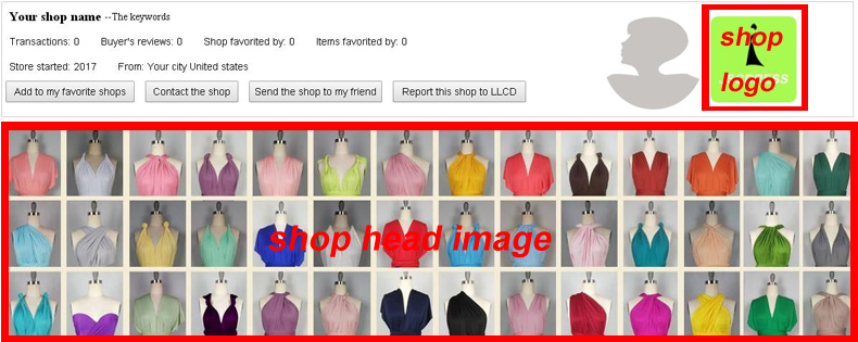 On this page, you can edit: shop logo, shop head image, shop name, shop announcement, shop about, shop shipping, shop payment policy, exchange/retun policy, shop keyword.